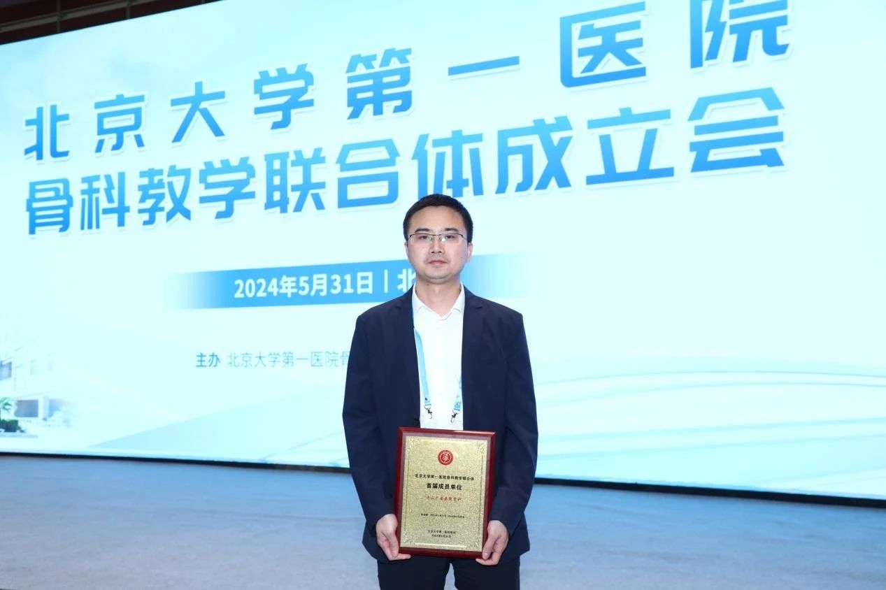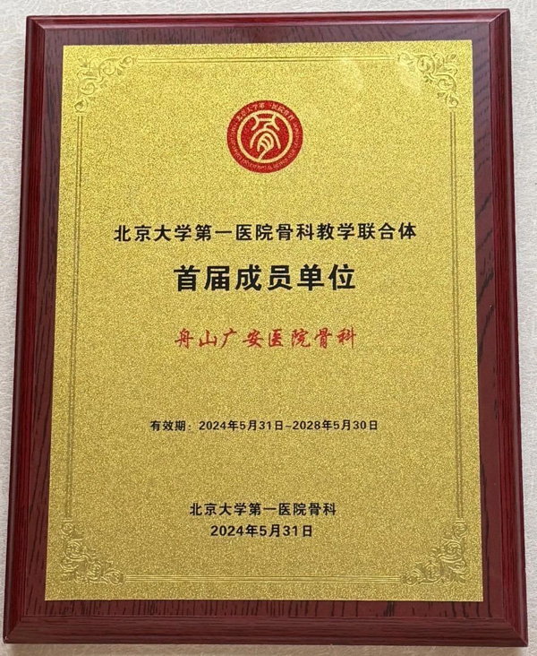 2024年5月31日,北京大學第一醫(yī)院(以下簡稱北大醫(yī)院)骨科教學聯(lián)合體(以下簡稱教聯(lián)體)成立會在北京成功召開。來自全國各地的大醫(yī)院代表參會,舟山廣安醫(yī)院成為北京大學第一醫(yī)院骨科教學聯(lián)合體首屆成員單位,骨科中心羅軍主任受邀參加成立大會,上臺領取教聯(lián)體合作單位證書。