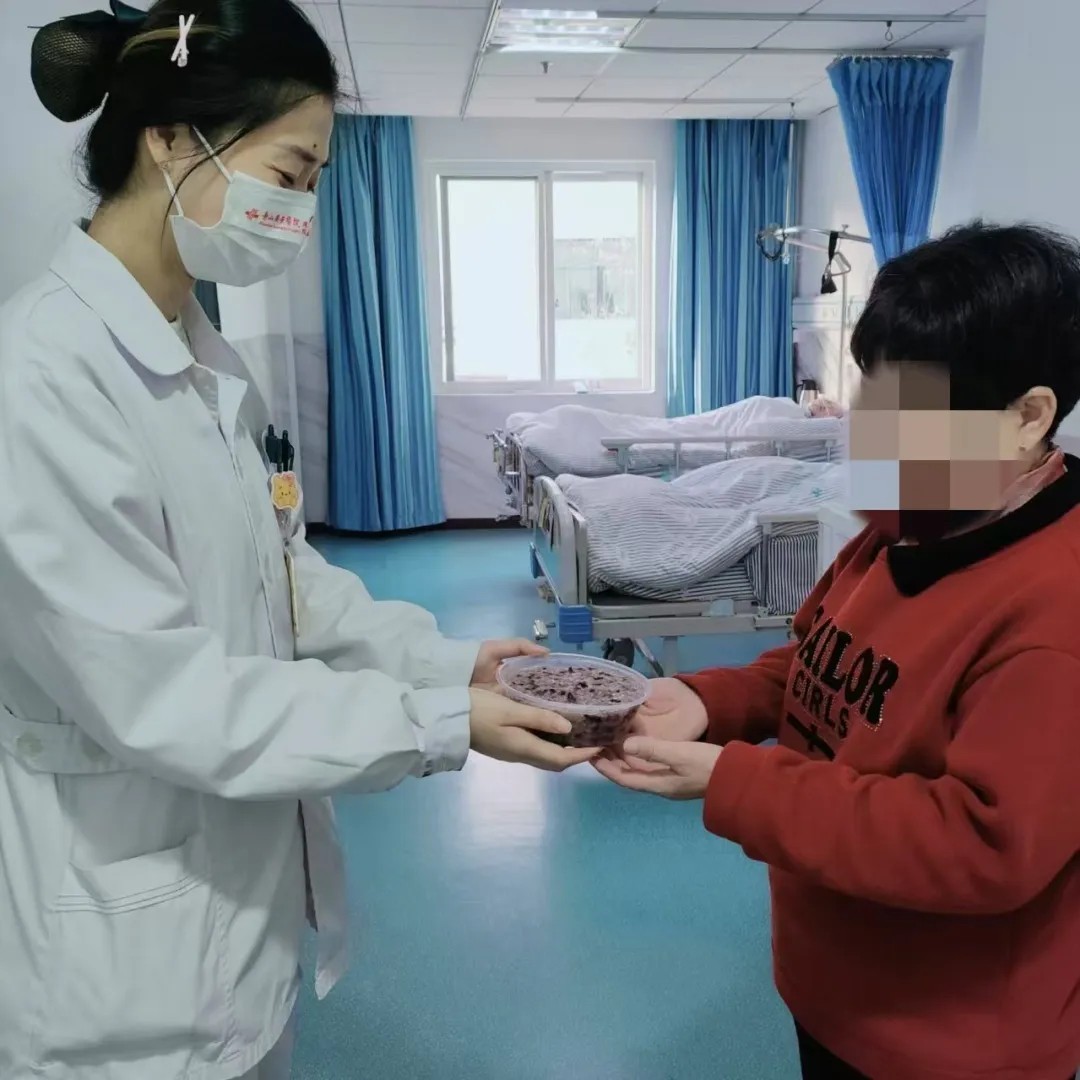 隨后,醫(yī)院工作人員將這些熱氣騰騰的臘八粥分裝打包,由工作人員送往各個(gè)病房。每到一處,工作人員們都會(huì)將臘八粥遞到病人手中,并送上節(jié)日的問候與祝福。病人和家屬們紛紛表示,在這樣特殊的節(jié)日里,醫(yī)院還能想到他們,讓他們感受到了家的溫暖。