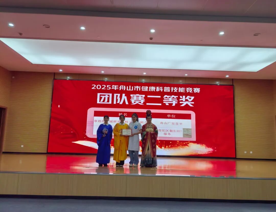 6月29日舉辦的“2025年舟山市健康科普技能競賽”中,舟山廣安醫(yī)院代表隊憑借情景劇《千年穿越,貴妃控糖》的精彩表現(xiàn),以新穎的科普形式、生動的舞臺演繹和扎實的專業(yè)內涵,榮獲團隊賽二等獎,展現(xiàn)了廣安醫(yī)院在健康科普領域的創(chuàng)新力與影響力。