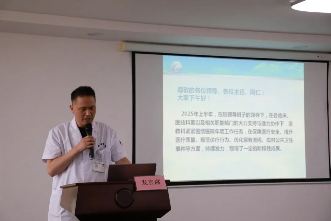 會(huì)議伊始,副院長周正作《2025年上半年工作報(bào)告》。報(bào)告指出,上半年醫(yī)院緊緊圍繞醫(yī)療質(zhì)量安全與規(guī)范化管理,各項(xiàng)工作穩(wěn)步推進(jìn):一是醫(yī)療質(zhì)量安全持續(xù)強(qiáng)化,規(guī)范診療流程,保障患者安全;二是科室管理主體責(zé)任進(jìn)一步落實(shí),管理效能顯著提升;三是學(xué)科建設(shè)與醫(yī)療技術(shù)不斷突破,新技術(shù)、新項(xiàng)目有序開展; 四是醫(yī)保及DRGS工作扎實(shí)推進(jìn),控費(fèi)管理更加精細(xì)化;五是信息化建設(shè)持續(xù)優(yōu)化,智慧醫(yī)療水平不斷提升;六是安全生產(chǎn)常抓不懈,筑牢醫(yī)院安全防線;七是社會(huì)責(zé)任積極履行,公益義診、健康宣教等活動(dòng)廣受好評。