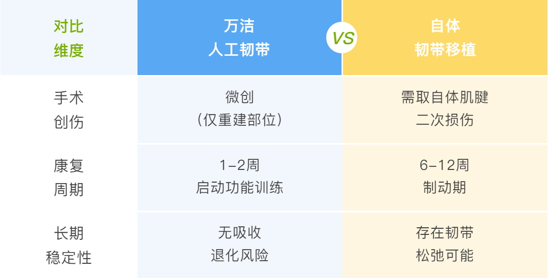 萬潔生物活性人工韌帶是通過表面改性技術(shù)實(shí)現(xiàn)生物相容性與力學(xué)性能雙重突破的產(chǎn)品,其三大核心優(yōu)勢直擊傳統(tǒng)手術(shù)痛點(diǎn):
