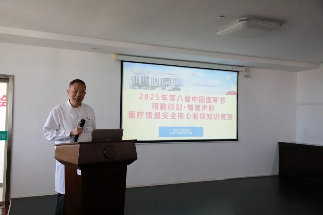 2025年8月19日,我院開展慶祝第八個中國醫(yī)師節(jié)系列活動,通過重溫《中國醫(yī)師宣言》,精勤礪劍·制度護(hù)航——醫(yī)療質(zhì)量安全核心制度知識競賽活動,進(jìn)一步提高診療技術(shù)水平、服務(wù)質(zhì)量和實(shí)踐操作能力,確保醫(yī)療安全,激發(fā)醫(yī)務(wù)工作者從業(yè)信念,學(xué)習(xí)制度、遵守制度、捍衛(wèi)制度的自覺性,推動我院醫(yī)療安全的高質(zhì)量發(fā)展。