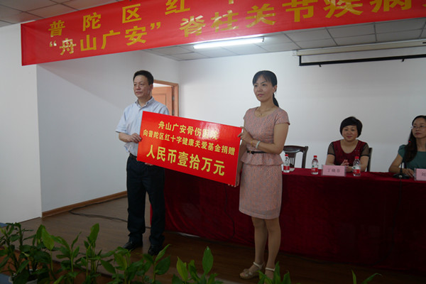 2013年6月30日上午,普陀區(qū)紅十字會(huì)與我院簽訂了普陀區(qū)紅十字健康關(guān)愛(ài)基金—“舟山廣安”脊柱關(guān)節(jié)疾病關(guān)愛(ài)項(xiàng)目協(xié)議。我院分兩年注入基金,減輕脊柱關(guān)節(jié)疾病患者的經(jīng)濟(jì)負(fù)擔(dān),首批基金達(dá)10萬(wàn)元。