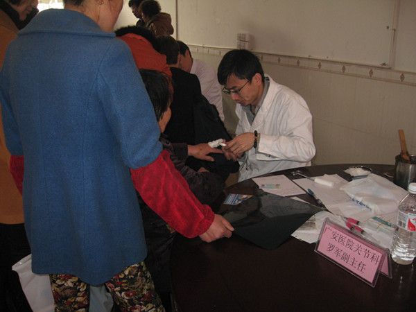關節(jié)科副主任羅軍為病人包扎傷口