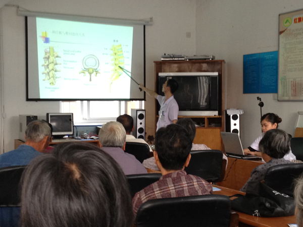 2012年9月19日下午2點(diǎn)舟山廣安骨傷醫(yī)院醫(yī)護(hù)人員前往紅旗社區(qū),為當(dāng)?shù)鼐用襁M(jìn)行有關(guān)骨質(zhì)疏松癥、頸椎病、腰腿痛等知識(shí)的講座,講座持續(xù)了一個(gè)小時(shí)左右。在講座結(jié)束后醫(yī)護(hù)人員還為當(dāng)?shù)鼐用衩赓M(fèi)進(jìn)行了骨密度測(cè)試,特別是老年人,提早讓他們知道自己的身體狀況,有骨質(zhì)疏松的提早治療。