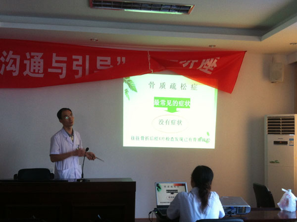劉志安副院長給曙光社區(qū)的老年人進(jìn)行有關(guān)骨質(zhì)疏松的講座
