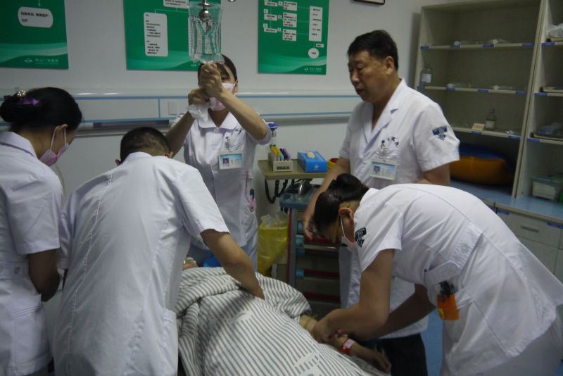 現(xiàn)場負(fù)責(zé)救治指揮的門急診方光波主任一一指導(dǎo)搶救工作,虞晉卿主任、醫(yī)教科張海萍副主任負(fù)責(zé)物資調(diào)配、床位預(yù)留、血液供應(yīng)以及全面協(xié)調(diào)工作,護(hù)理部應(yīng)娜主任對門急診護(hù)士進(jìn)行三梯隊分工協(xié)調(diào),院感科趙娟娜主任對手衛(wèi)生、醫(yī)廢的收集、分類、管理及個人防治進(jìn)行督導(dǎo),總務(wù)科李華主任對應(yīng)急處置進(jìn)行現(xiàn)場指導(dǎo)。5分鐘內(nèi)院內(nèi)各科室急救小組全部到位待命