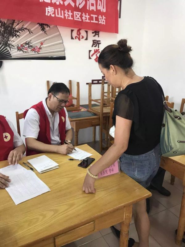一大早,社區(qū)門(mén)口就等滿了前來(lái)看病的居民。義診團(tuán)隊(duì)一到社區(qū),放置好手中的儀器設(shè)備藥品等,馬不停蹄的開(kāi)始接待病人。此次義診,廣安醫(yī)院共派出了包括骨科、外科、內(nèi)科、藥劑科、特技科等13名骨干專(zhuān)家。