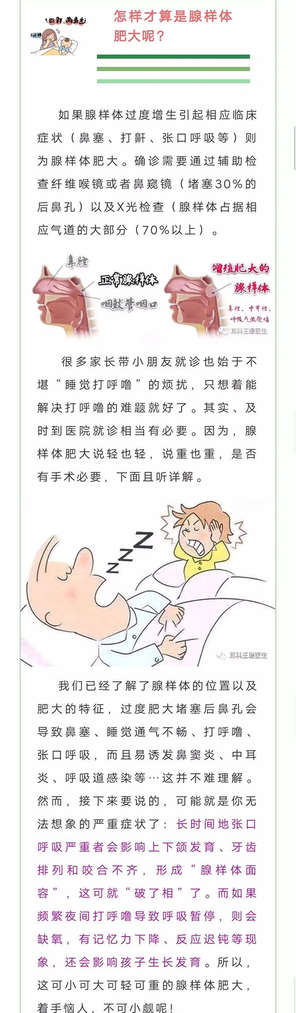 年輕媽媽們要認真觀察小朋友的細微變化。打呼嚕不是小事,上課注意力不集中可能也有因可尋(缺氧)??傊?,平時應(yīng)注意鍛煉身體,增強體質(zhì),隨氣溫變化調(diào)整衣物避免感冒,防范于未然是最重要的。如果有癥狀出現(xiàn),要及時就醫(yī),力求大事化小、小事化了,萬萬不可積小成大喔!