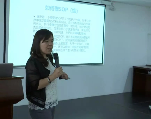其中,她對SOP的標準格式、撰寫的方法、工作流程的繪制等內(nèi)容進行了重點講解。
