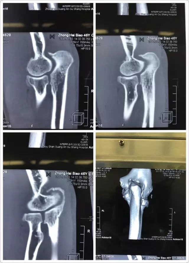 于是他慕名來到舟山廣安醫(yī)院危立軍副院長處就診,診斷為肘關節(jié)內游離體,肘關節(jié)伸直功能障礙。