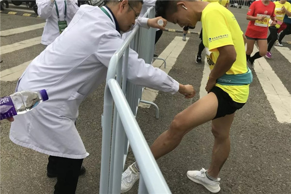 隨著賽事的推進(jìn),求助的運(yùn)動員逐漸多了起來,出現(xiàn)足踝扭挫傷、小腿肌肉痙攣、膝關(guān)節(jié)疼痛、體力不支等情況。