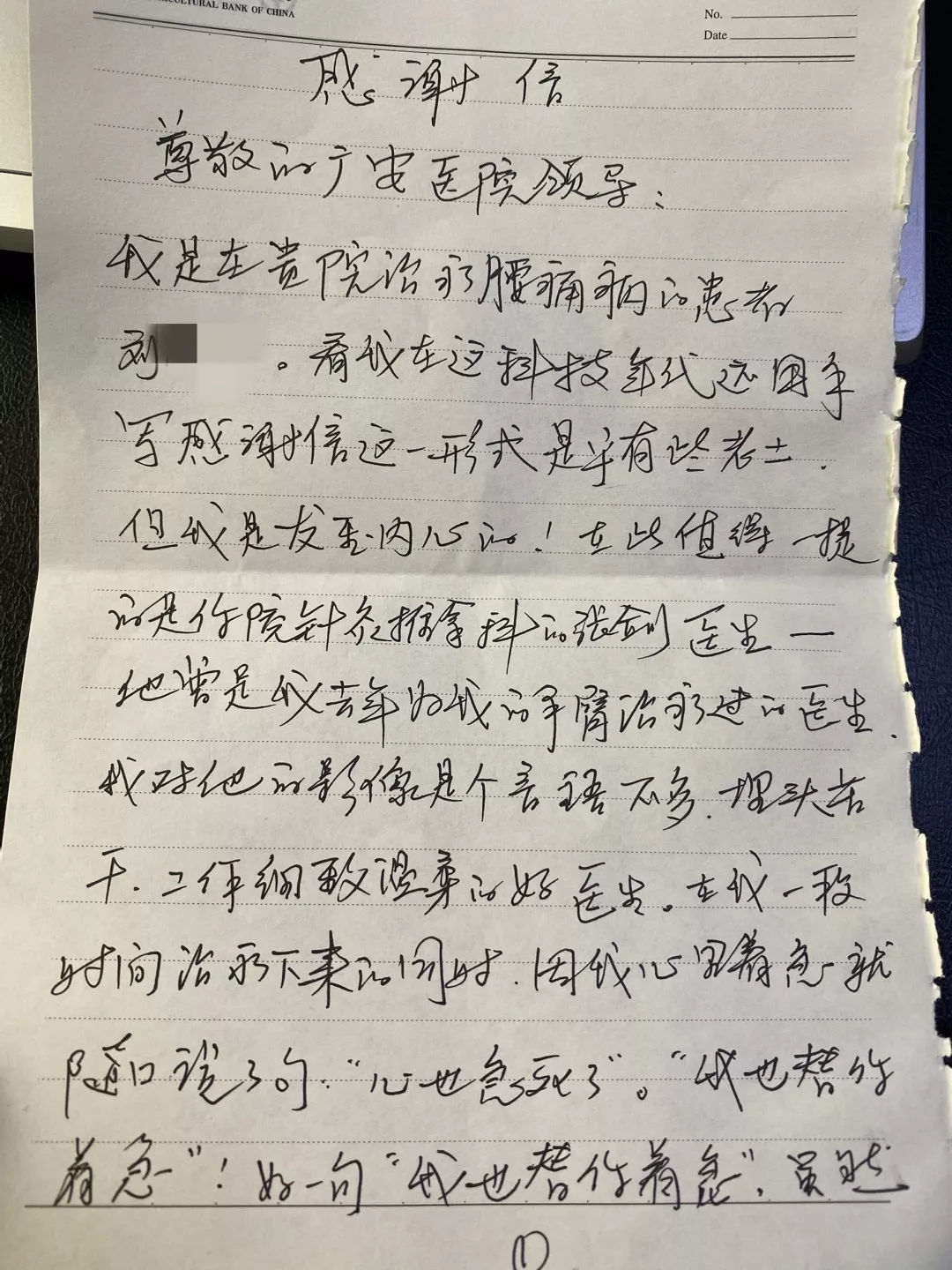 一封手寫的感謝信,在這醫(yī)患關(guān)系緊張的時期,顯得越發(fā)彌足珍貴。
