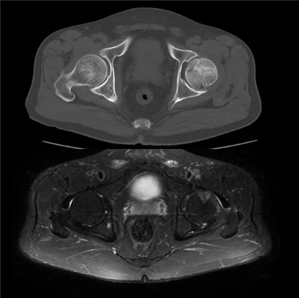 (CT和磁共振顯示:髖關(guān)節(jié)撞擊征合并股骨頭壞死)