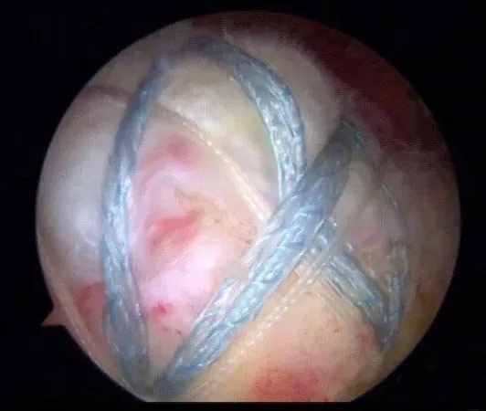 完善術(shù)前檢查后,羅軍主任帶領(lǐng)手術(shù)團隊為患者行關(guān)節(jié)鏡下肩峰成形、肩袖修補手術(shù)。術(shù)中只需要幾個不到0.5 mm的切口,在關(guān)節(jié)鏡下,把患者肩膀的骨刺磨除,同時利用可吸收錨釘將斷裂的韌帶修補。術(shù)后第二天,王女士就感覺肩膀疼痛明顯緩解,一年來終于可以睡個安穩(wěn)覺了。