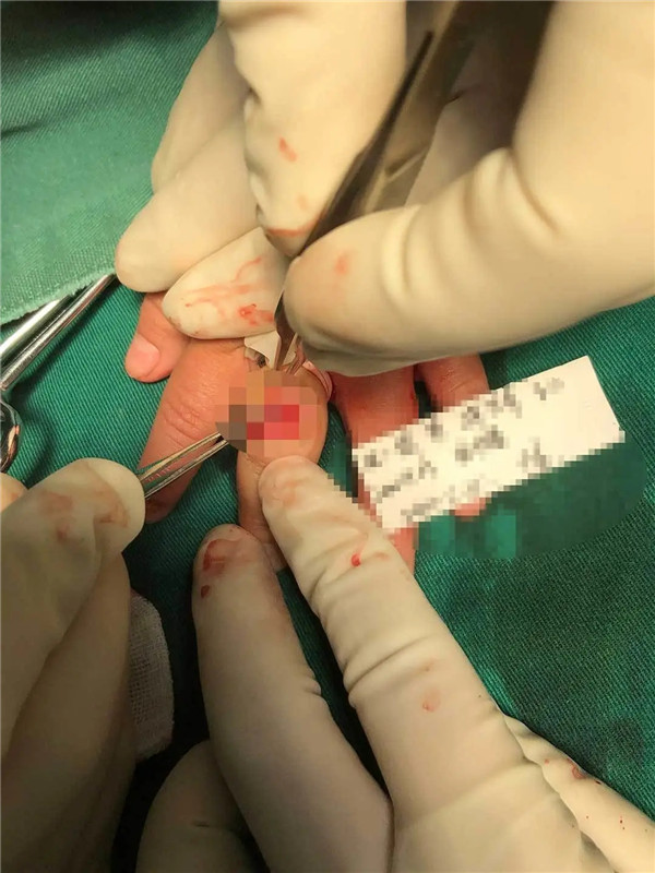 當(dāng)童童一家三口到達(dá)我院時(shí),已經(jīng)半夜十一點(diǎn)多了。急診科副主任方光波查看童童的傷口后,診斷為左中指伸肌腱斷裂,需要手術(shù)縫合,緊急通知手術(shù)室與手外科副主任周小軍。