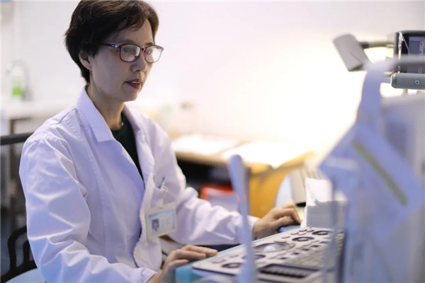 和毛先生口中描述的一樣,今年60余歲的孫棣棣主任已從事超聲檢查工作三十幾年,在她看來,每個患者都需要被溫柔認真對待。為了這樣的信念,每天她都需要在工位上呆足八小時以上,保持單手拿探頭、目光盯屏幕的動作,一天下來,腰酸肩麻是常有的事。