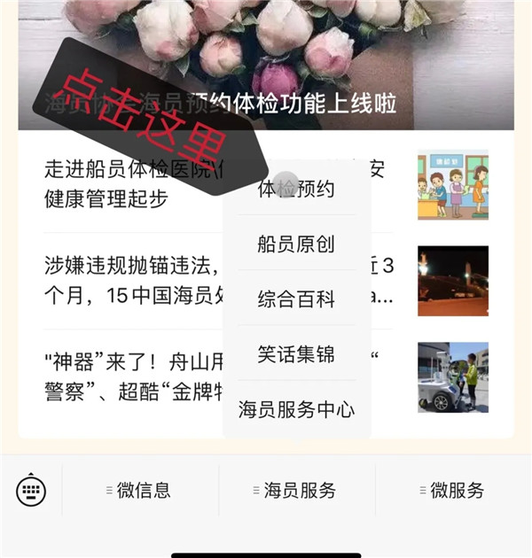 02、點(diǎn)擊海員服務(wù)--體檢預(yù)約欄目