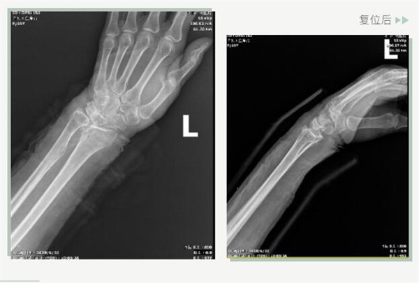 25日當天,莊阿婆來到危立軍副院長門診,經(jīng)拍片顯示,莊阿婆左橈骨遠端粉碎性骨折,左髂骨至髖臼后緣及恥骨下支骨折??紤]到莊阿婆年紀較大,基礎病較多,難以經(jīng)受手術創(chuàng)傷,傳統(tǒng)手法復位更為合適。推、拽、按、捺……經(jīng)過危立軍副院長一番手法復位后,再次拍片顯示莊阿婆橈骨遠端骨折端復位位置良好,莊阿婆及其家人感到非常滿意。