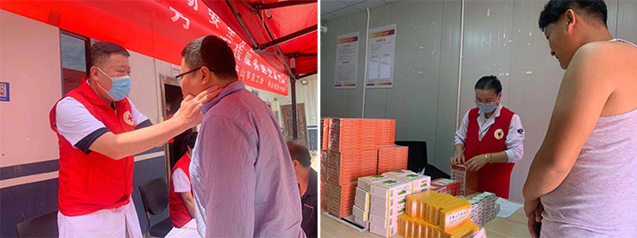 “這次義診我們發(fā)現(xiàn)很多工人都有腰背酸痛、腰肌勞損等問題,還有很多還有皮膚病。這次我們也為他們提供了很多日常保養(yǎng)的常識。告訴他們?nèi)绾巫晕冶Wo(hù)。同時(shí)因?yàn)橄募镜牡絹?,很容易出現(xiàn)中暑的情況,我們也傳授了很多預(yù)防中暑及中暑后如何處理的知識。希望能夠幫助到他們。”此次義診帶隊(duì)人虞晉卿主任說道。