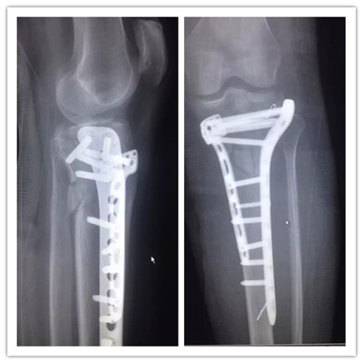 患者小吳(化名),因車禍致左膝部受傷到廣安醫(yī)院就診,被診斷為“左脛骨平臺(tái)粉碎性骨折”,分屬第Ⅴ型,骨折移位明顯,碎裂嚴(yán)重,手術(shù)操作難度很大,殘留后遺癥幾率極高。廣安醫(yī)院院長劉志安通過“3D打印”進(jìn)行“提前干預(yù)”,術(shù)前對(duì)鋼板放置的位置、數(shù)量及確定螺釘?shù)姆较蚝烷L度等,經(jīng)過反復(fù)多次的模擬手術(shù),評(píng)估不同的手術(shù)方法,討論手術(shù)策略,制定出最適宜的個(gè)性化手術(shù)方案。