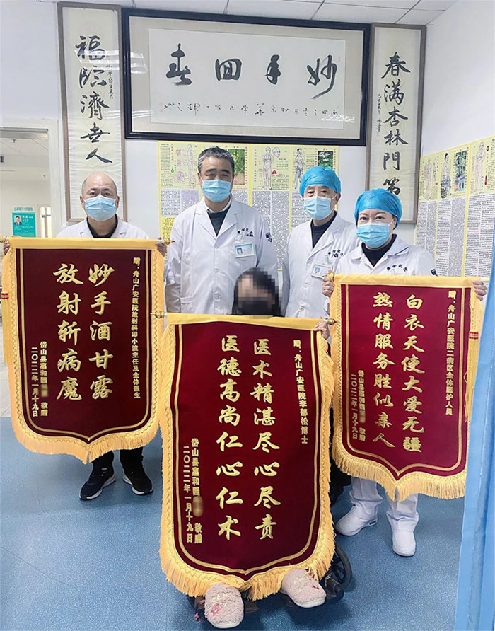 1月19日一大早,舟山廣安醫(yī)院就上演了溫馨的一幕,一位病人坐著輪椅將三面錦旗和一封感謝信送到骨科中心首席專家李郁松教授,放射科主任印小波以及二病區(qū)醫(yī)護人員手中,表示感謝。