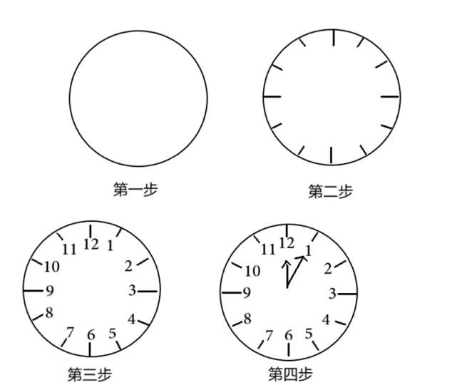 在白紙上畫一個鐘表,依次寫上鐘點數(shù)字,并標出時間11:10的指針方向。而判斷標準則需要符合三點: