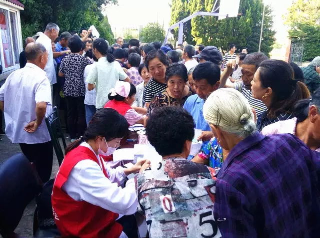 12點45分,志愿者們抵達(dá)現(xiàn)場,不出意料,活動現(xiàn)場已經(jīng)被社區(qū)工作人員安排妥當(dāng),許多村民已經(jīng)前來排隊就診。醫(yī)護人員放好醫(yī)療器械,馬上為村民們看診、答疑解惑,并宣傳衛(wèi)生知識。