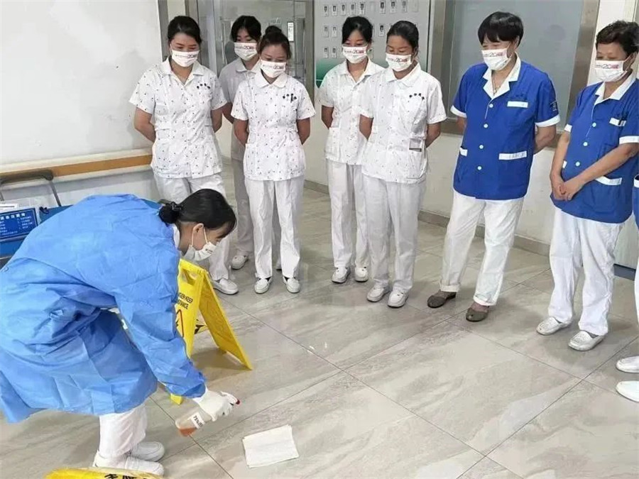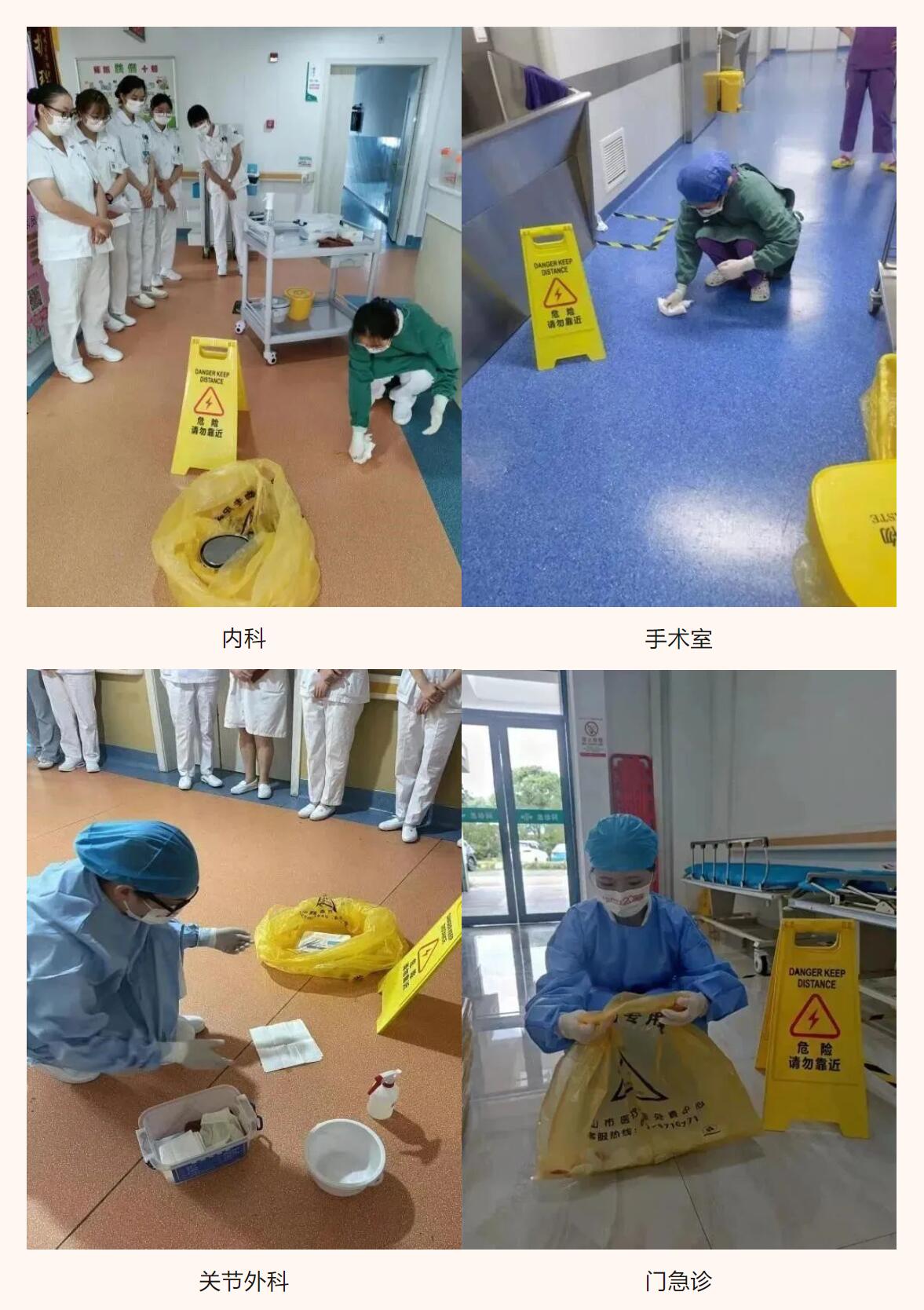 為了妥善處理這類(lèi)比較常見(jiàn)的突發(fā)事件,進(jìn)一步提高我院醫(yī)務(wù)人員對(duì)血液、體液濺灑地面的應(yīng)急處理能力,最大限度降低污染造成的危害,保障醫(yī)療安全,8月24日,感染管理科、護(hù)理部聯(lián)合各臨床及相關(guān)重點(diǎn)科室組織開(kāi)展了血液、體液濺灑意外事件應(yīng)急處置演練。