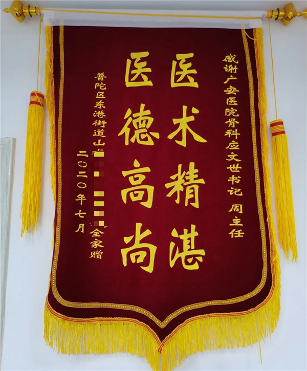 6月3日,在征得家屬同意,洋洋的身體符合手術(shù)指征后,洋洋接受了右鎖骨骨折切開復(fù)位內(nèi)固定術(shù),手術(shù)由應(yīng)文世主任主刀。術(shù)中可見右鎖骨呈粉碎性骨折,骨折端移位明顯。一個(gè)小時(shí)后,手術(shù)順利結(jié)束。術(shù)后,洋洋恢復(fù)良好,6月9日順利出院。一個(gè)月后,在來復(fù)查時(shí),洋洋的媽媽帶來了一面錦旗送予應(yīng)文世主任及手外科周小君副主任,以感謝他們的高超技術(shù)及優(yōu)質(zhì)服務(wù)。
