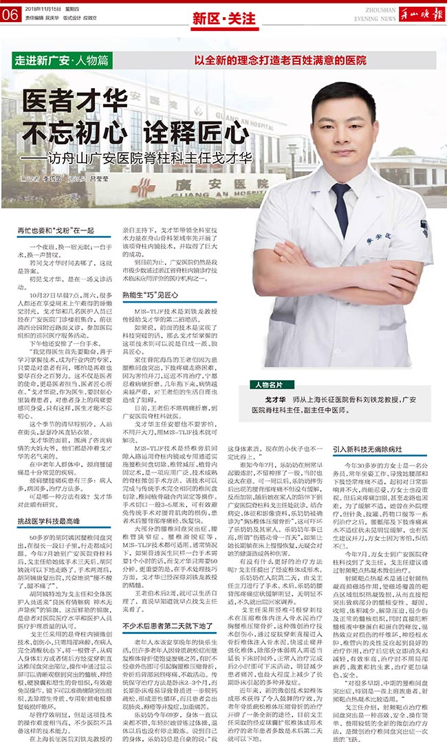 ——訪舟山廣安醫(yī)院脊柱科主任戈才華