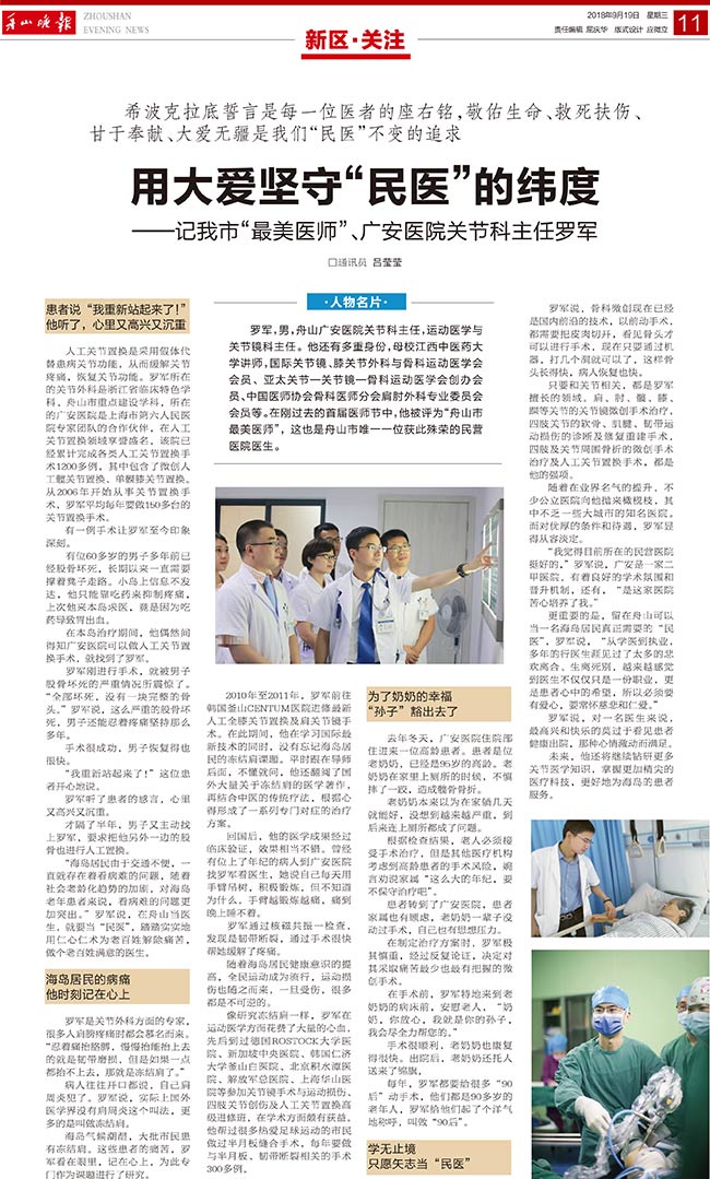 ——記我市“最美醫(yī)師”、廣安醫(yī)院關(guān)節(jié)科主任羅軍
