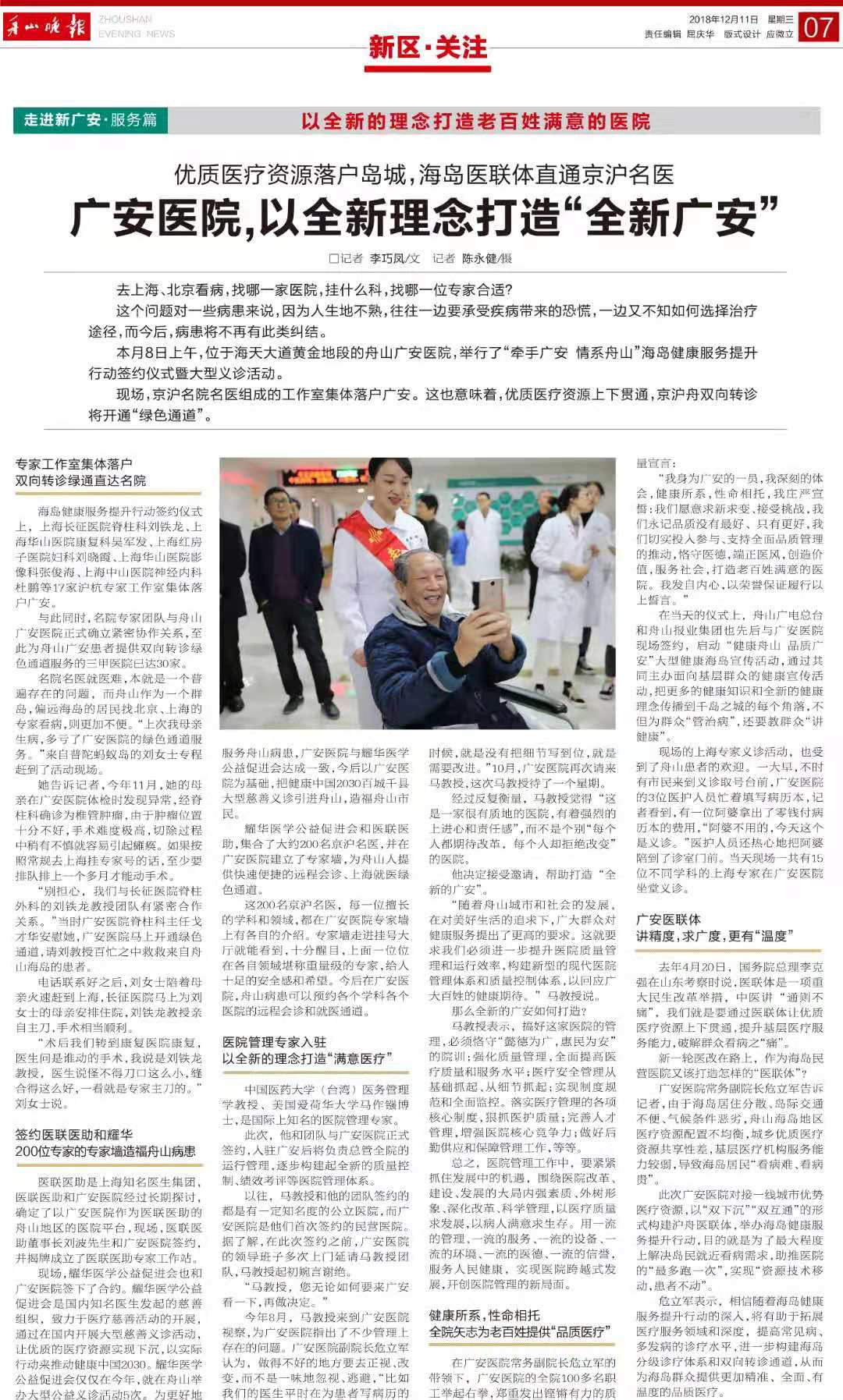 本月8日上午,位于海天大道黃金地段的舟山廣安醫(yī)院,舉行了“牽手廣安 情系舟山,海島健康服務(wù)提升行動(dòng)簽約儀式大型義診活動(dòng)。