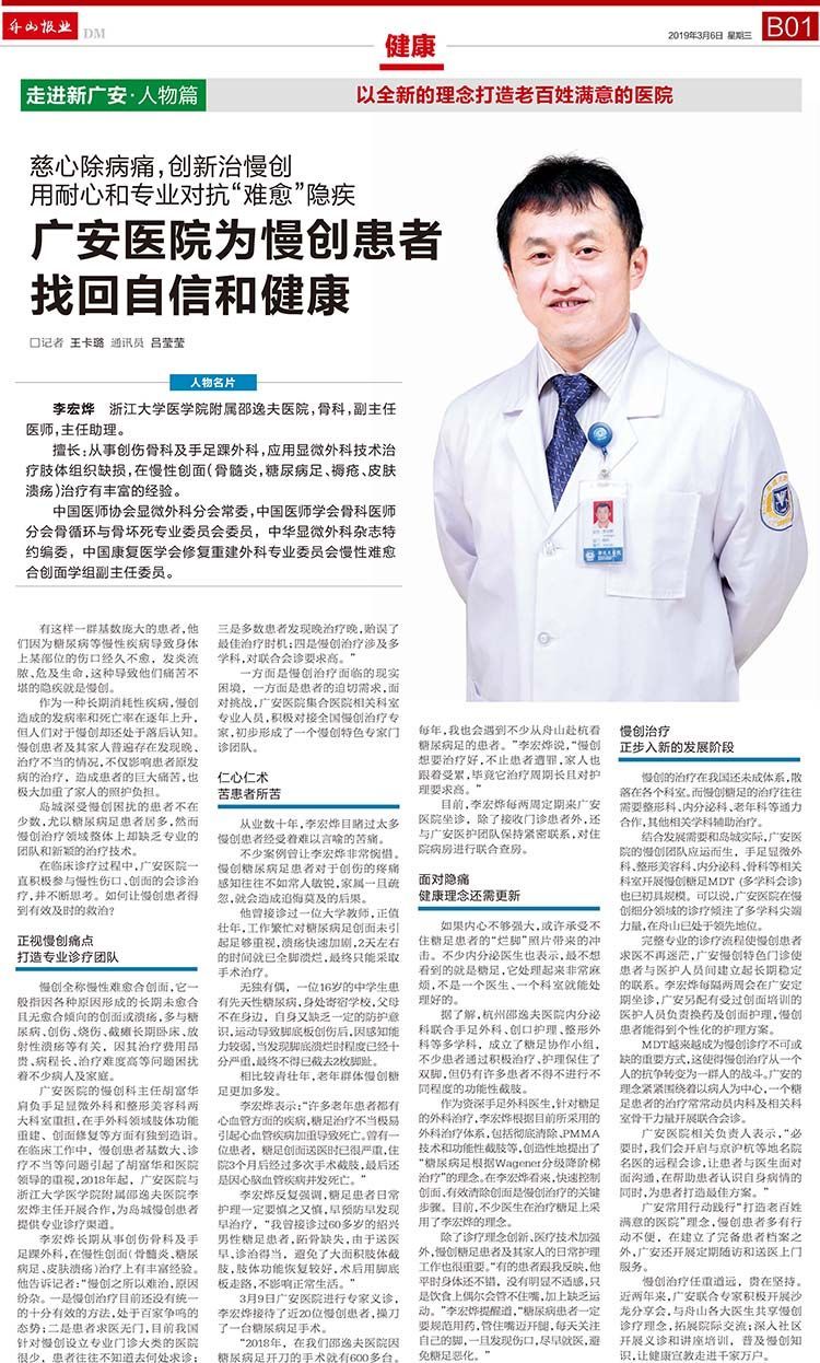 擅長:從事創(chuàng)傷骨科及手足踝外科,應(yīng)用顯微外科技術(shù)治療肢體組織缺損,在慢性創(chuàng)面(骨髓炎、糖尿病足、褥瘡、皮膚潰瘍)治療有豐富的經(jīng)驗。