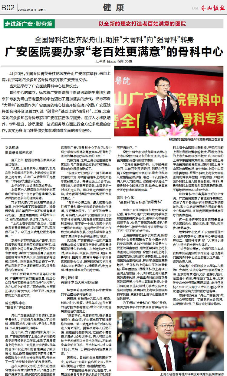 4月20日,全國骨科菁英脊柱論壇在舟山廣安醫(yī)院舉行,來自上海、北京等地的眾多知名骨科專家齊聚廣安開展義診。