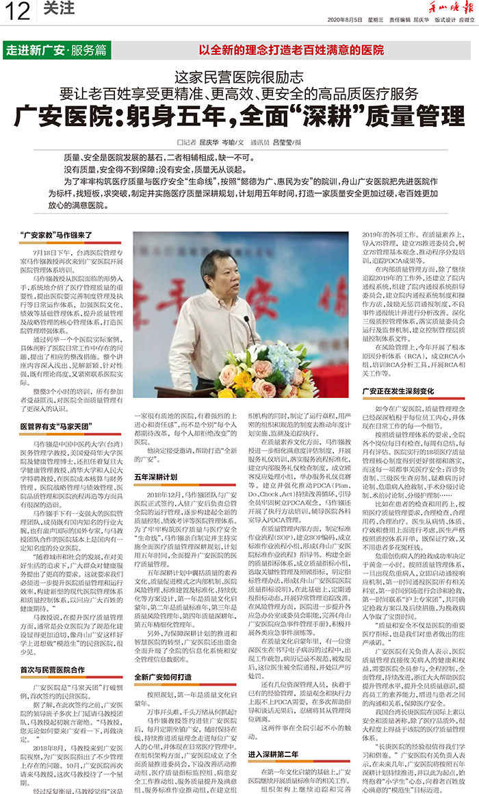 廣安人懷揣著對于醫(yī)療的敬畏和對舟山人的大愛,將以更加昂揚的姿態(tài)和海納百川的胸懷,不斷把學科建設和醫(yī)療技術水平推向更高的境界,服務舟山、造福社會。