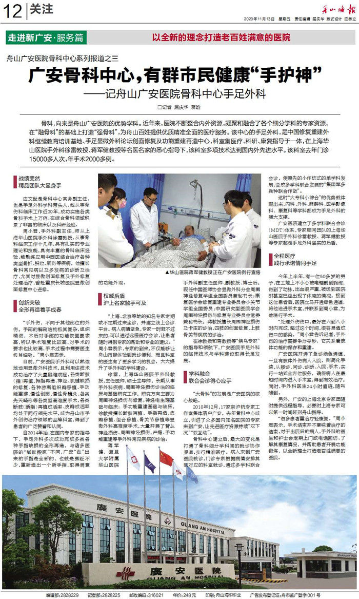 廣安人懷揣著對于醫(yī)療的敬畏和對舟山人的大愛,將以更加昂揚(yáng)的姿態(tài)和海納百川的胸懷,不斷把學(xué)科建設(shè)和醫(yī)療技術(shù)水平推向更高的境界,服務(wù)舟山、造福社會。