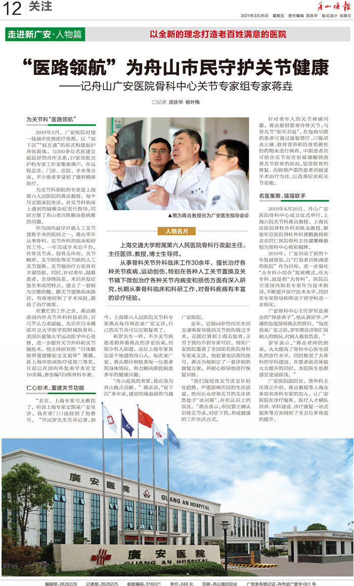 “醫(yī)路領(lǐng)航”為舟山市民守護關(guān)節(jié)健康——記舟山廣安醫(yī)院骨科中心關(guān)節(jié)專家組專家蔣垚