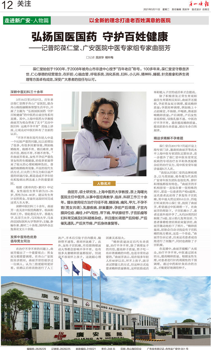 廣安人懷揣著對于醫(yī)療的敬畏和對舟山人的大愛,將以更加昂揚的姿態(tài)和海納百川的胸懷,不斷把學科建設和醫(yī)療技術(shù)水平推向更高的境界,服務舟山、造福社會。