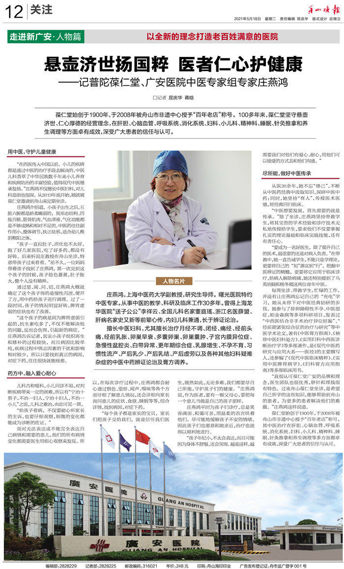 廣安人懷揣著對(duì)于醫(yī)療的敬畏和對(duì)舟山人的大愛,將以更加昂揚(yáng)的姿態(tài)和海納百川的胸懷,不斷把學(xué)科建設(shè)和醫(yī)療技術(shù)水平推向更高的境界,服務(wù)舟山、造福社會(huì)。