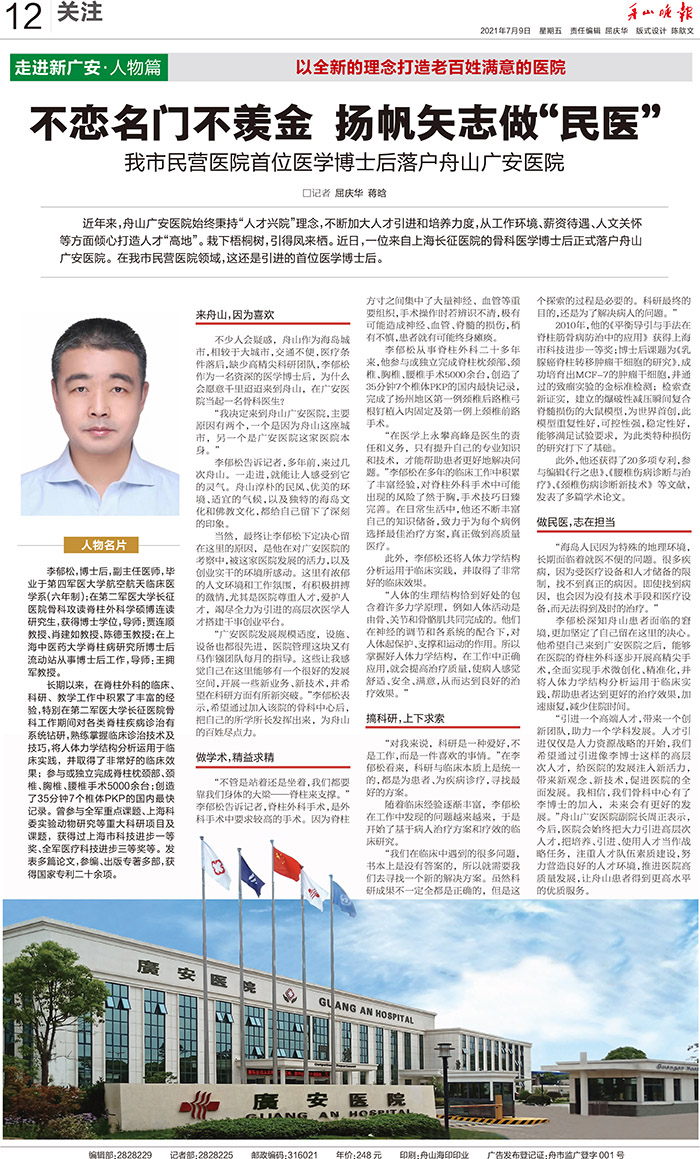 廣安人懷揣著對于醫(yī)療的敬畏和對舟山人的大愛,將以更加昂揚的姿態(tài)和海納百川的胸懷,不斷把學科建設和醫(yī)療技術水平推向更高的境界,服務舟山、造福社會。