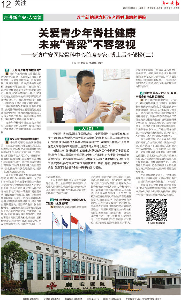 廣安人懷揣著對于醫(yī)療的敬畏和對舟山人的大愛,將以更加昂揚(yáng)的姿態(tài)和海納百川的胸懷,不斷把學(xué)科建設(shè)和醫(yī)療技術(shù)水平推向更高的境界,服務(wù)舟山、造福社會(huì)。