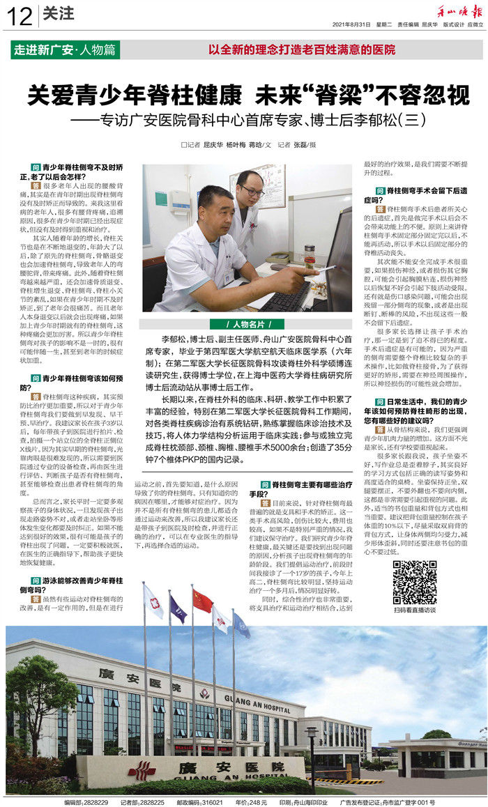 廣安人懷揣著對于醫(yī)療的敬畏和對舟山人的大愛,將以更加昂揚的姿態(tài)和海納百川的胸懷,不斷把學(xué)科建設(shè)和醫(yī)療技術(shù)水平推向更高的境界,服務(wù)舟山、造福社會。