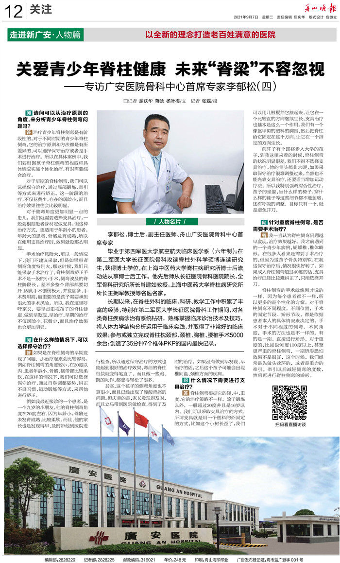 關(guān)愛青少年脊柱健康 未來“脊梁”不容忽視——專訪廣安醫(yī)院骨科中心首席專家李郁松(四)