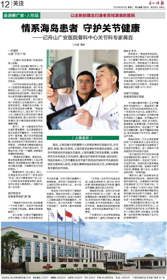 廣安人懷揣著對(duì)于醫(yī)療的敬畏和對(duì)舟山人的大愛,將以更加昂揚(yáng)的姿態(tài)和海納百川的胸懷,不斷把學(xué)科建設(shè)和醫(yī)療技術(shù)水平推向更高的境界,服務(wù)舟山、造福社會(huì)。