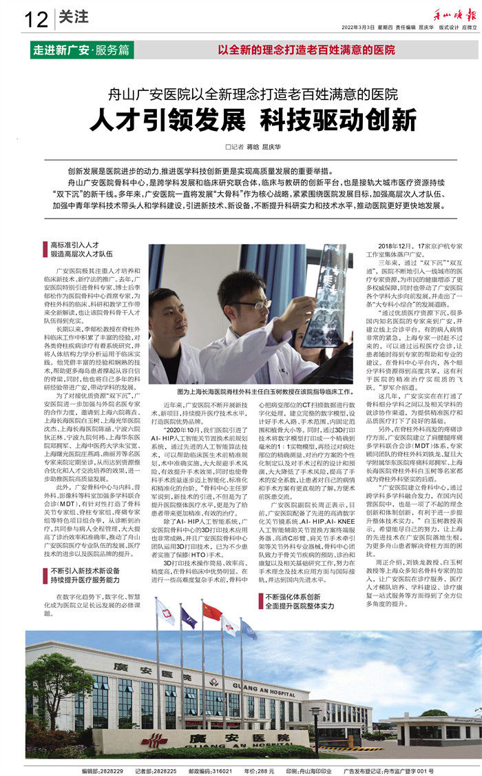 舟山廣安醫(yī)院以全新理念打造老百姓滿意的醫(yī)院—人才引領(lǐng)發(fā)展 科技驅(qū)動(dòng)創(chuàng)新