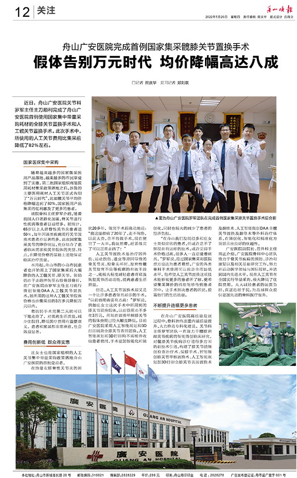 廣安人懷揣著對于醫(yī)療的敬畏和對舟山人的大愛,將以更加昂揚(yáng)的姿態(tài)和海納百川的胸懷,不斷把學(xué)科建設(shè)和醫(yī)療技術(shù)水平推向更高的境界,服務(wù)舟山、造福社會(huì)。