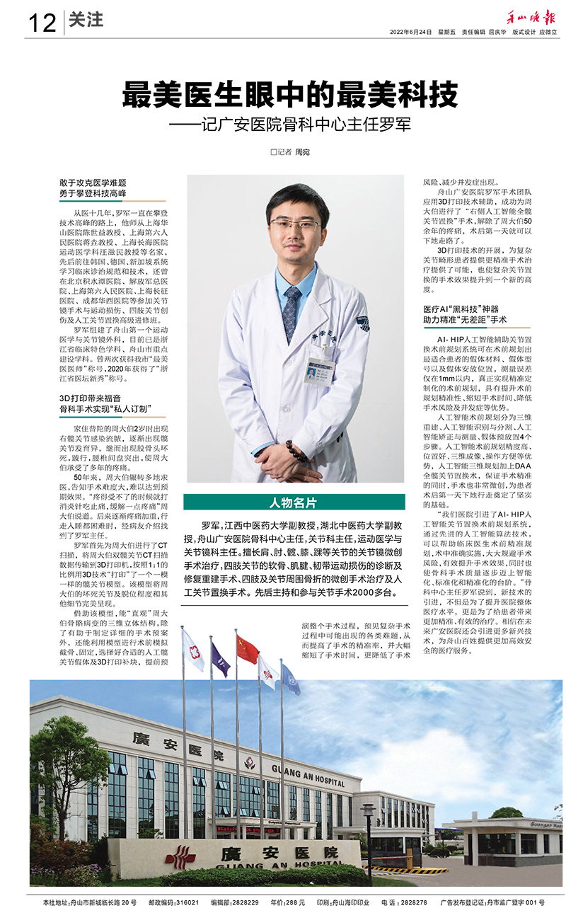 廣安人懷揣著對于醫(yī)療的敬畏和對舟山人的大愛,將以更加昂揚的姿態(tài)和海納百川的胸懷,不斷把學科建設和醫(yī)療技術水平推向更高的境界,服務舟山、造福社會。