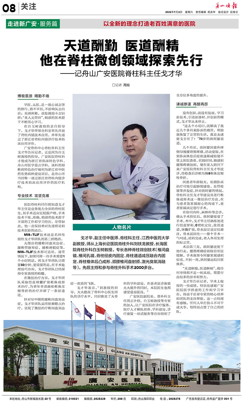 廣安人懷揣著對于醫(yī)療的敬畏和對舟山人的大愛,將以更加昂揚的姿態(tài)和海納百川的胸懷,不斷把學(xué)科建設(shè)和醫(yī)療技術(shù)水平推向更高的境界,服務(wù)舟山、造福社會。