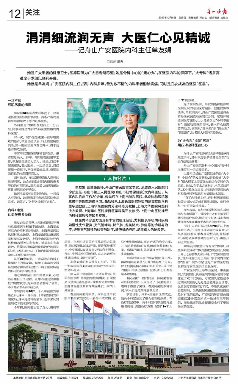 涓涓細流潤無聲 大醫(yī)仁心見精誠——記舟山廣安醫(yī)院內(nèi)科主任單友娟